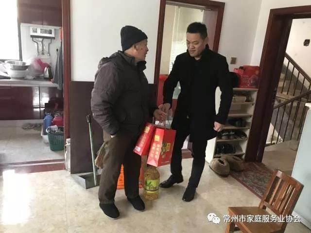 于2月7日上午,常州市家庭服务业协会会长徐步雪、常州市家庭服务业协会党组织书记吴逸新、常州市家庭服务业协会副会长殷建峰、常州市家庭服务业协会副会长王芳、常州市家庭服务业协会常务理事张骥等一行及社会爱心人士一同将善款购置的年货送到困难家庭老人们的手上,同时带上大家的新年问候,希望来年一切平平安安、顺顺利利。