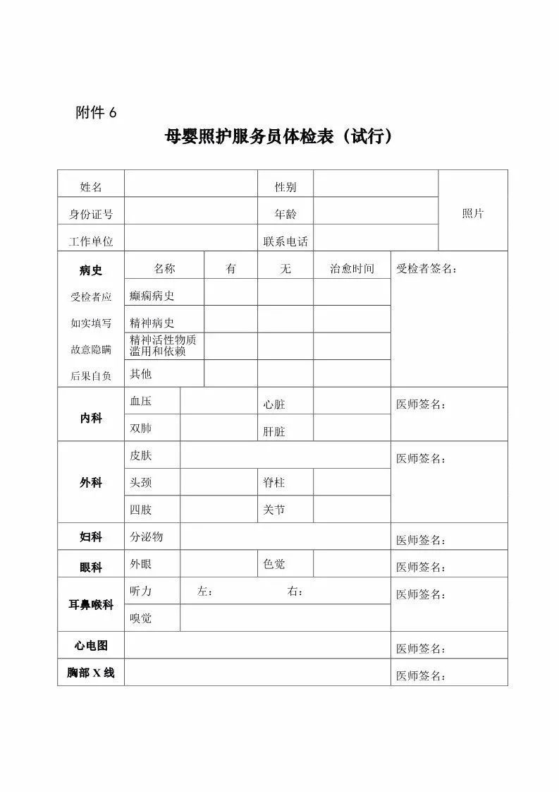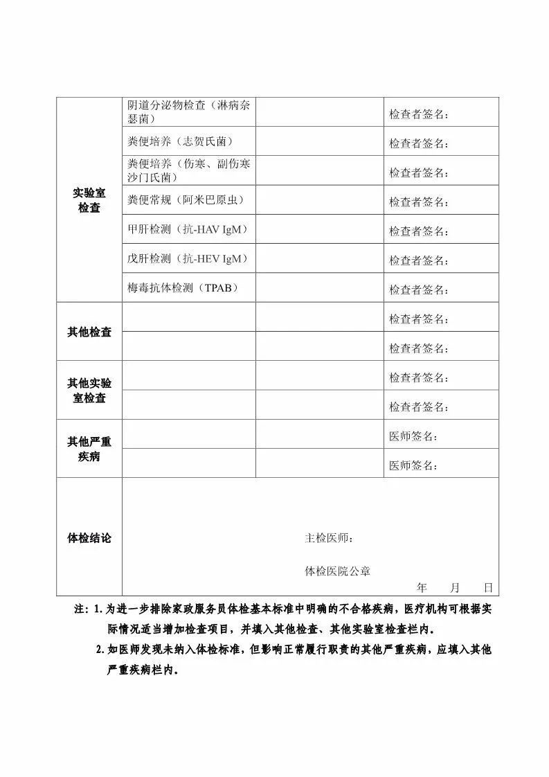关于推进家政服务员分类体检工作的通知