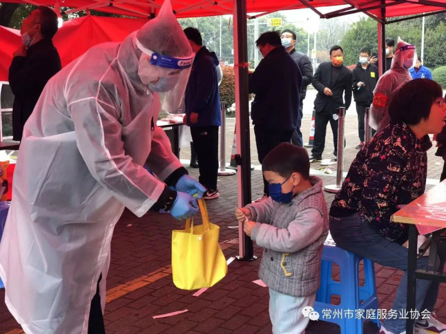 他说“疫情面前,人人有责!我是一名退役军人,更是一名中共党员,国家需要的时候,我必须上。”常州市家庭服务业协会党支部书记吴逸新第一时间响应街道党工委号召,迅速行动,3月18日天还没亮,吴书记就早早来到社区核酸检测点。这几天,常州迎来降雨降温天气,吴书记在阴雨交加的户外,指导帮助居民扫码、登记和测温,核对和录入身份信息,提醒大家保持安全距离,维持核酸检测现场秩序。