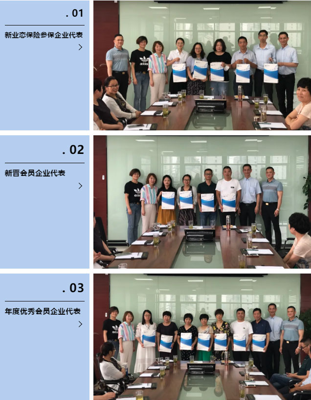 协会领导班子为参会的企业代表发放慰问用品并合影留念。