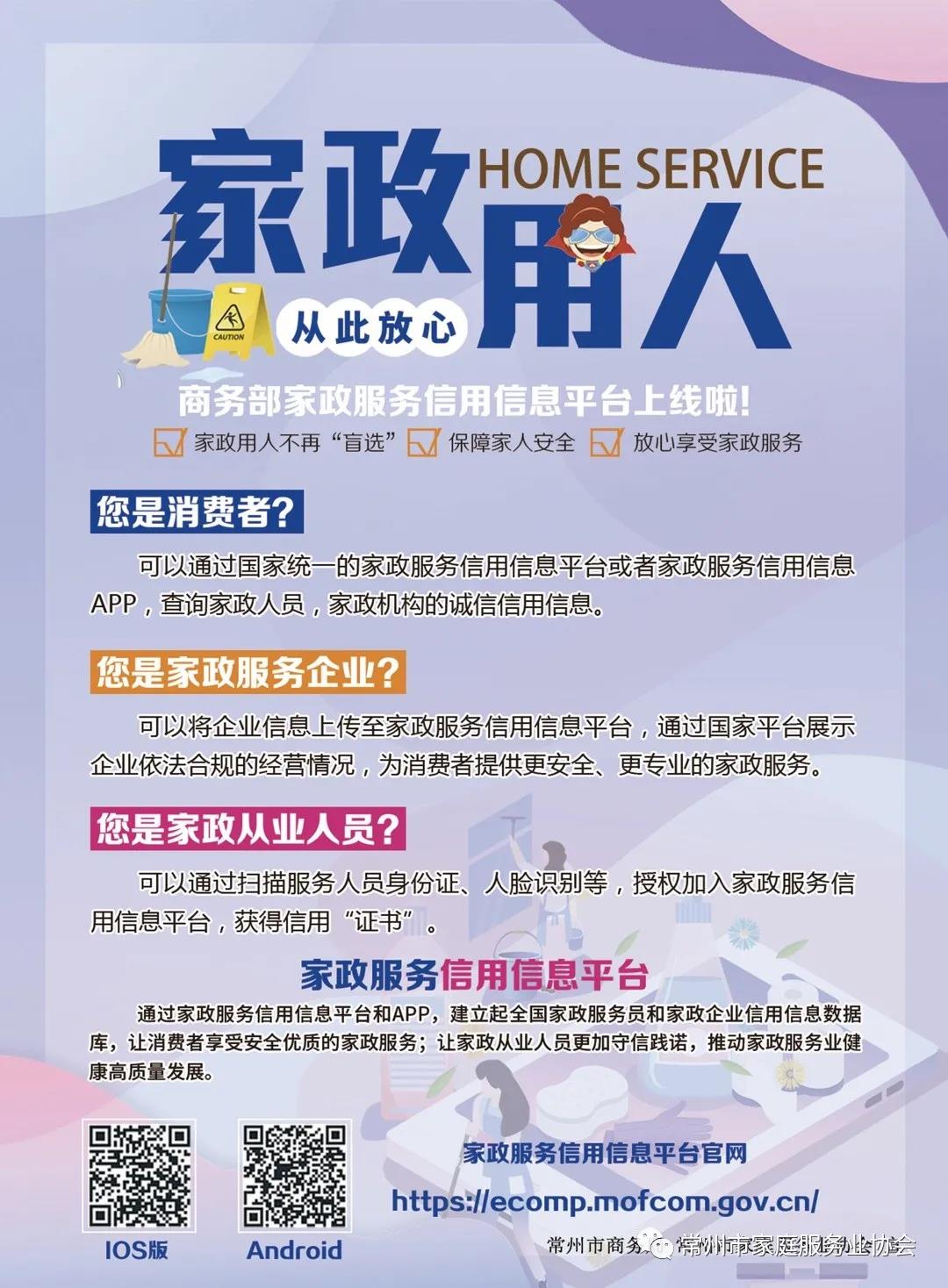 自常州市家政信用体系建设工程推动以来,协会内涌现了一批表现优秀、成绩突出的家政企业,在商务部信用信息平台服务员诚信数据录入过程中,积极宣传,大力推进,为我市家政服务提质扩容注入了新的活力。