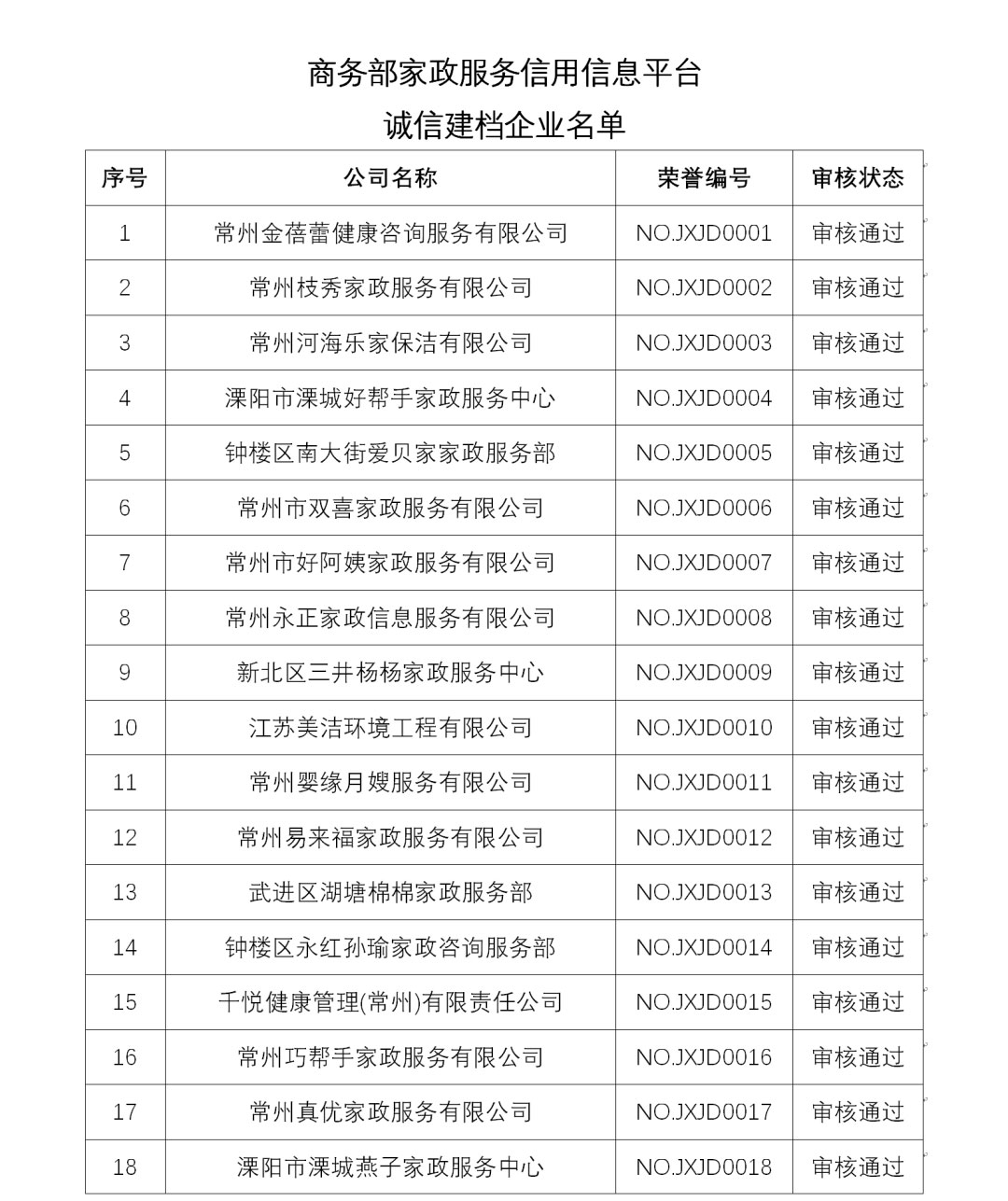 常州市首批百家诚信建档企业名单公示